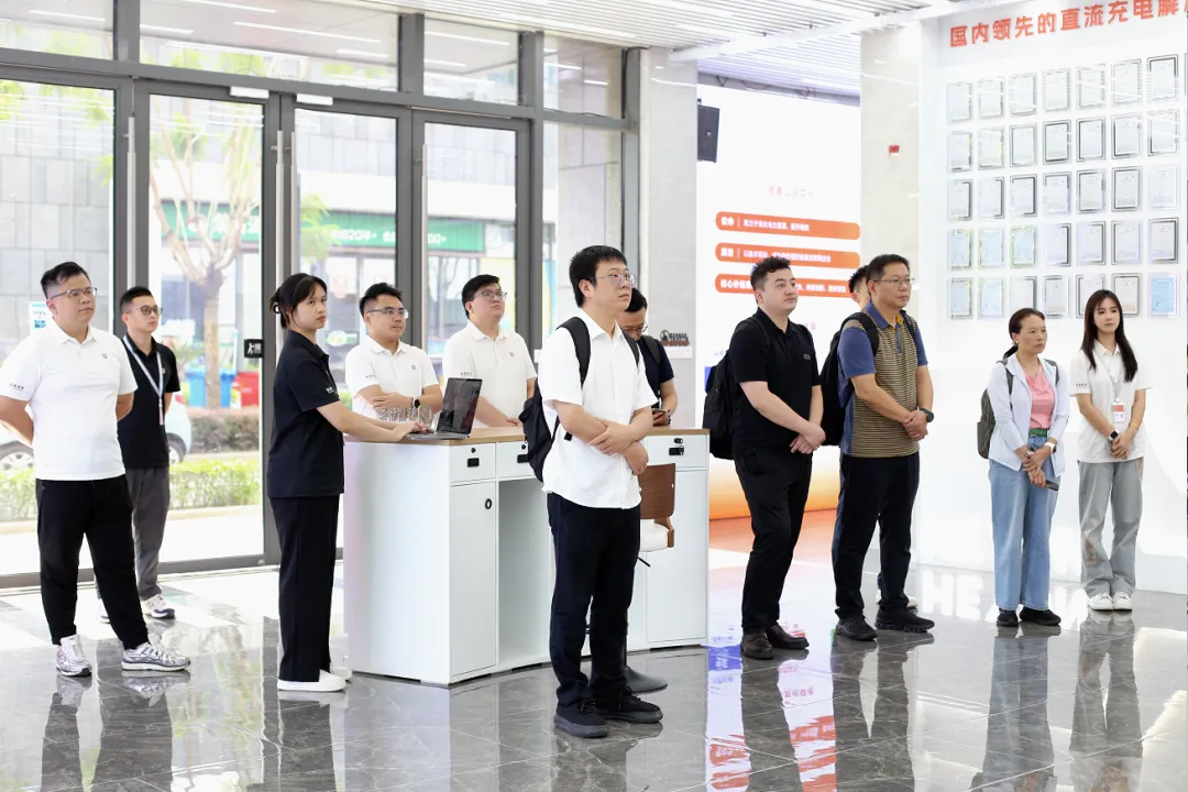 考察团先后了解我司发展历程及产品业务,重点了解作为国内车企一级供应商的核心实力。在展示区,自主研发的国标车规级直流快充系统引发关注 —— 该技术已助力公司与一汽奔腾、奇瑞、五菱等头部车企建立深度合作,形成覆盖乘用车、商用车、两轮车的完整产品矩阵。其中,为一汽奔腾定制的二代快充产品已实现前装应用,搭载于奔腾小马车型;三代产品正加速研发,将进一步拓展应用场景。